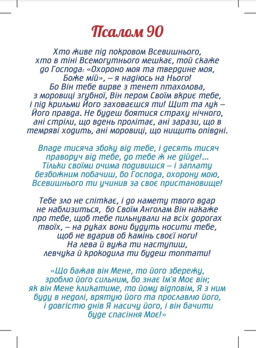 Листівка маленька "Молитва покаяння + Псалом 90"